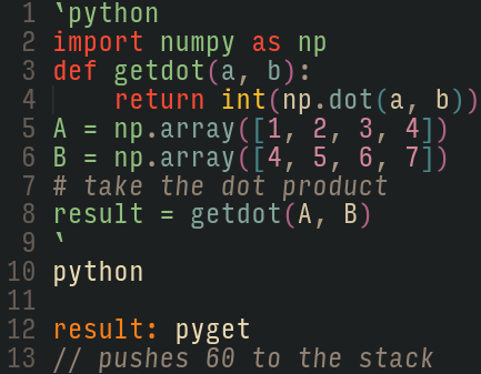 The vscode plugin supports embedded syntax highlighting for python/c/shell/sql/markdown/json. These are interpreted as strings and can then be executed in their respective languages.
